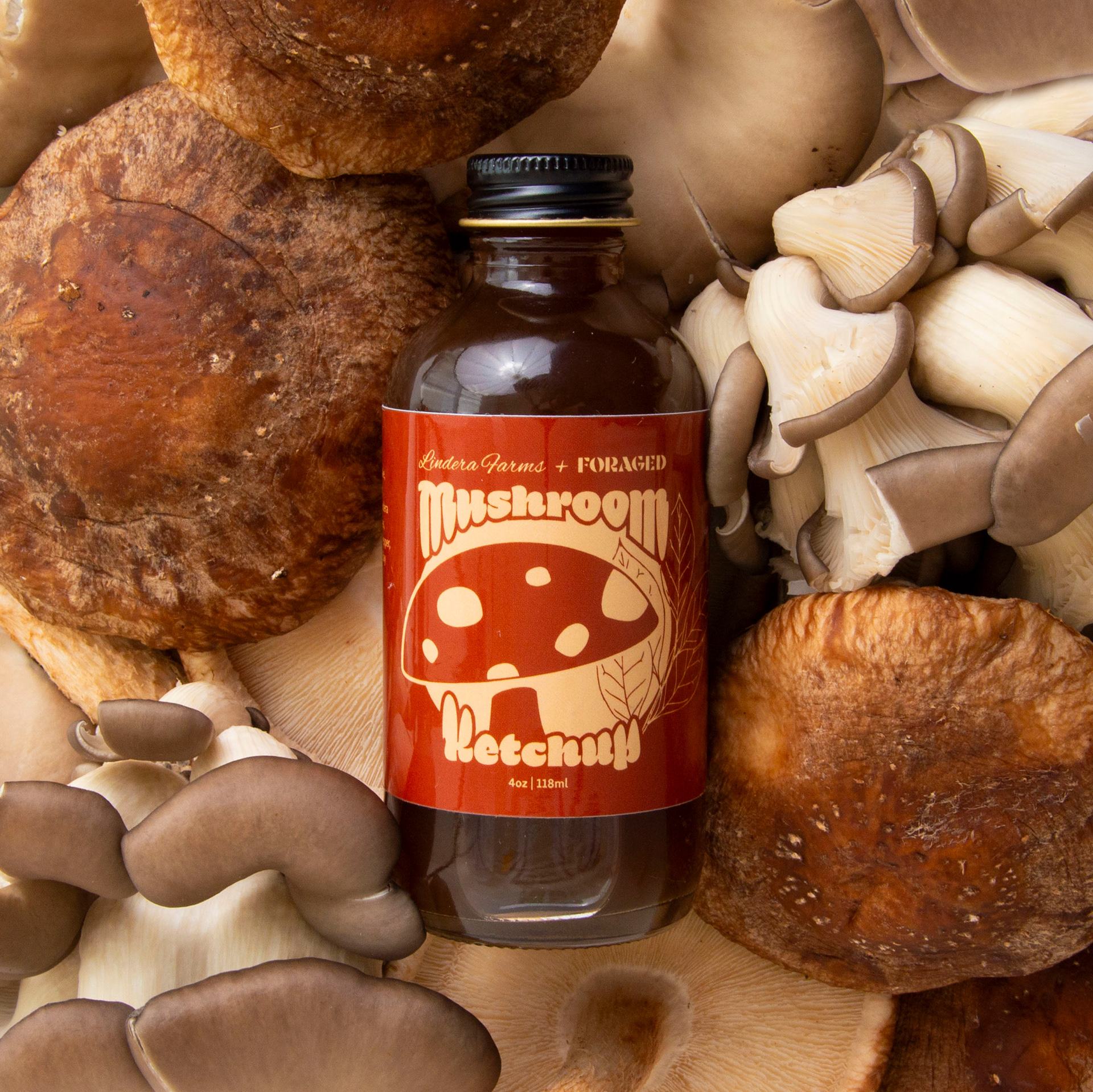 Mushroom Ketchup is a collaborative throwback to the original fermented condiments that inspired tomato ketchup. Using a variety of locally foraged mushrooms and vinegar from Lindera Farms, the Mushroom Ketchup is more like a Worchestershire sauce in it consistency and flavor. The label channels the groovy, psychodelic style of the 1960s that makes a great aesthetic for a shroom-based sauce.
